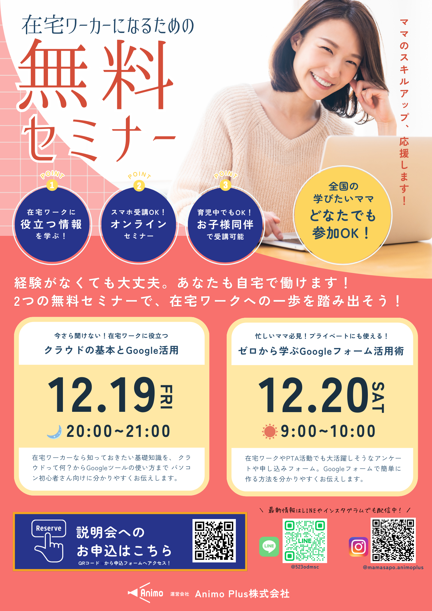 AnimoPlus株式会社が運営する「ママポセンター」より無料セミナーのご案内です。